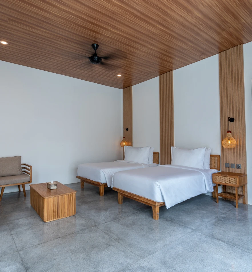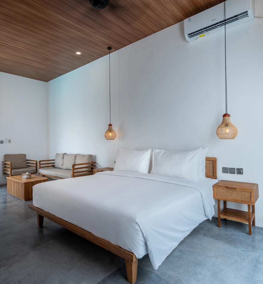 Designed for elevated privacy, the Upper Room offers a peaceful retreat with open views and gentle natural light. Its calm atmosphere and thoughtfully curated interiors create a space that feels intimate, airy, and ideal for unwinding in complete comfort.